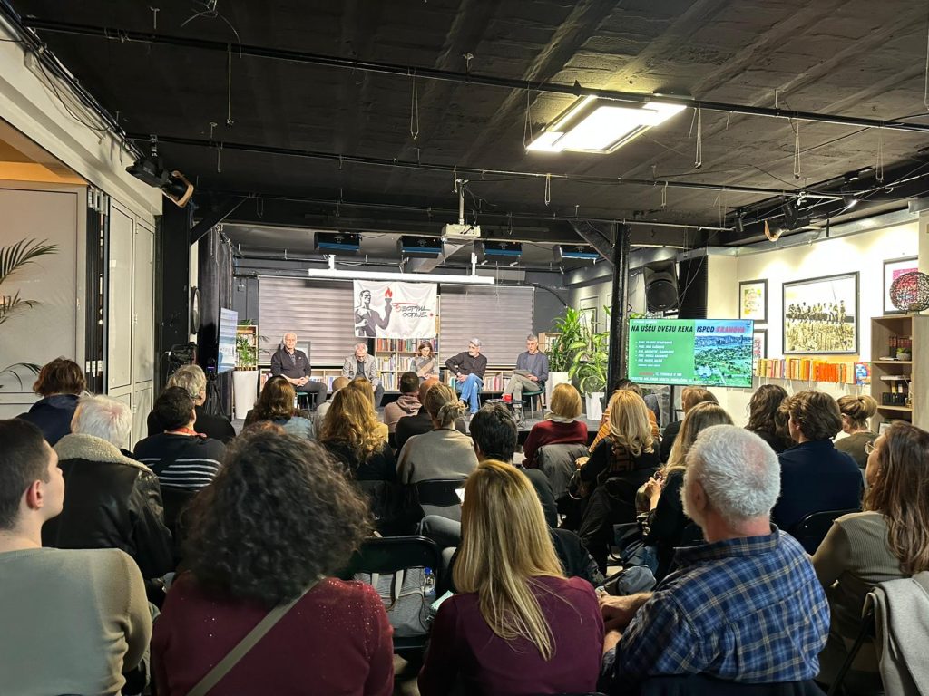 U prostoru Miljenko Dereta održana je debata pod nazivom „Na Ušću dveju reka ispod kranova“, u organizaciji Inicijative Beograd ostaje. U debati su učestvovali arhitekta Branislav Mitrović, autor projekta Beogradskog akvarijuma, arhitekta Marko Jakšić, arhitekta Ana Mitić-Radulović, predsednik konkursne komisije Ivan Rašković, kao i predstavnik inicijative Đorđe Miketić, koji je bio moderator tribine.